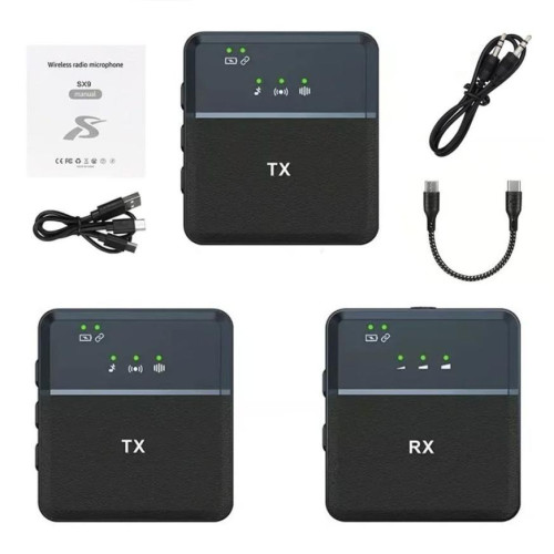 Conectividad: Es un sistema inalámbrico que utiliza transmisión 2.4G, con un alcance de hasta 20-30 metros en condiciones óptimas. El receptor (RX) se conecta directamente al dispositivo de grabación mediante conexiones USB-C, Lightning o jack de 3.5 mm, dependiendo de los cables y adaptadores incluidos en el paquete.